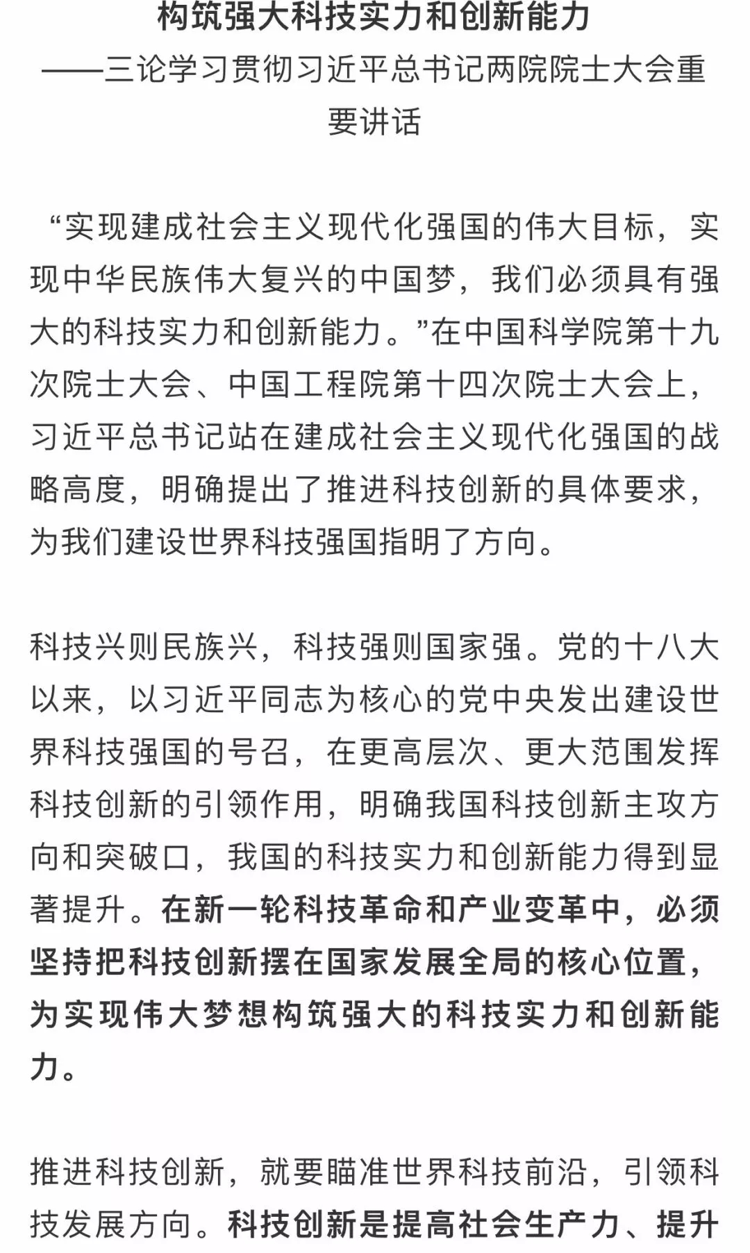 人民日報評論員:構筑強大科技實(shí)力和創(chuàng )新能力——三論學(xué)習貫徹習近平總書(shū)記兩院院士大會(huì )重要講話(huà)